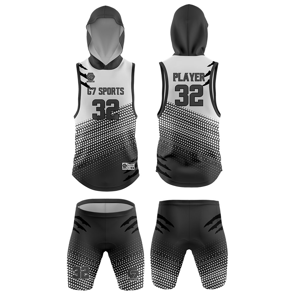 7v7 Compression uniforms are offered in sleeveless cut with crew neck and hoodie options. In addition you can select from compression fit shorts or loose fit shorts. G7 Sports Team Apparel uses high quality fabrication and light weight four-way stretch fabric provide athletes effortless movement for peak performance. In addition to uniforms we offer complete packages with everything you need.